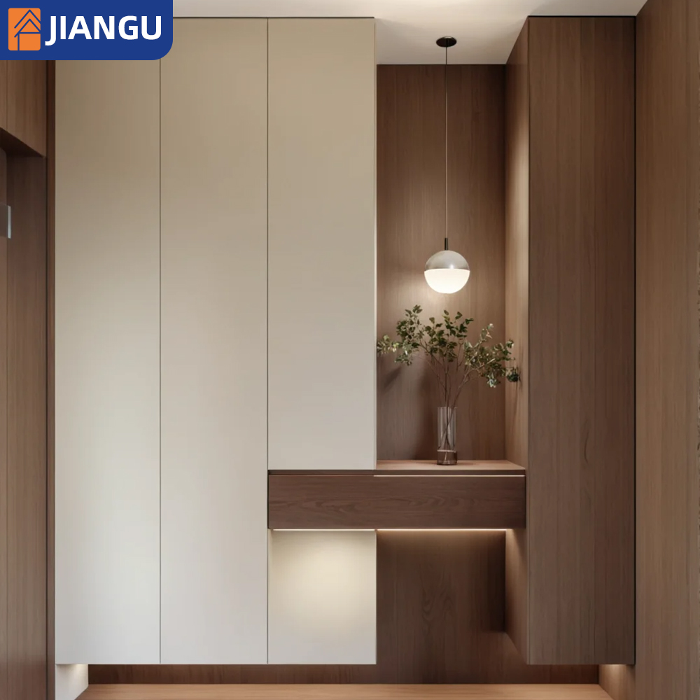 Jiangu Smart Home was founded in 2014. Over the past ten years, it has been dedicated to providing full-home customization services, mainly offering wooden doors, wood finishes, cabinet products, and smart home systems.We offer our customers three major values: achieving a unified aesthetic space th