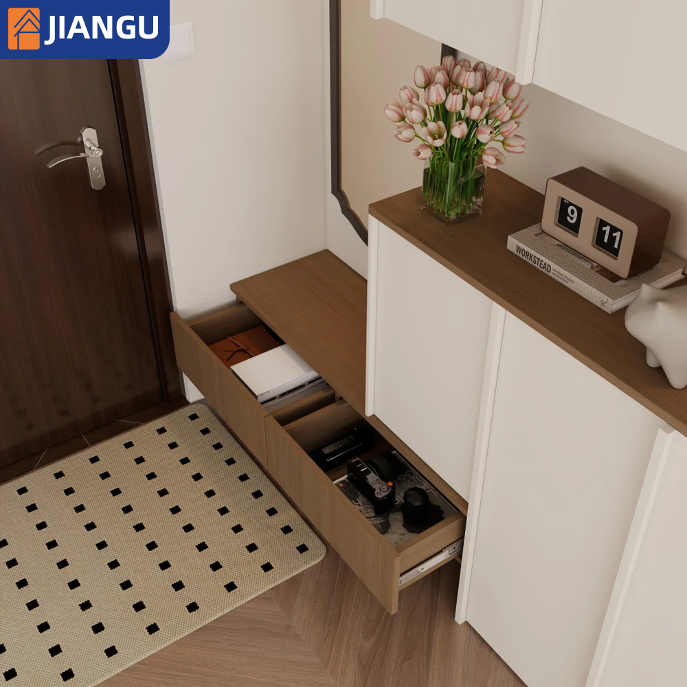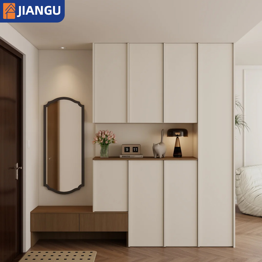 Jiangu Smart Home was founded in 2014. Over the past ten years, it has been dedicated to providing full-home customization services, mainly offering wooden doors, wood finishes, cabinet products, and smart home systems.We offer our customers three major values: achieving a unified aesthetic space th