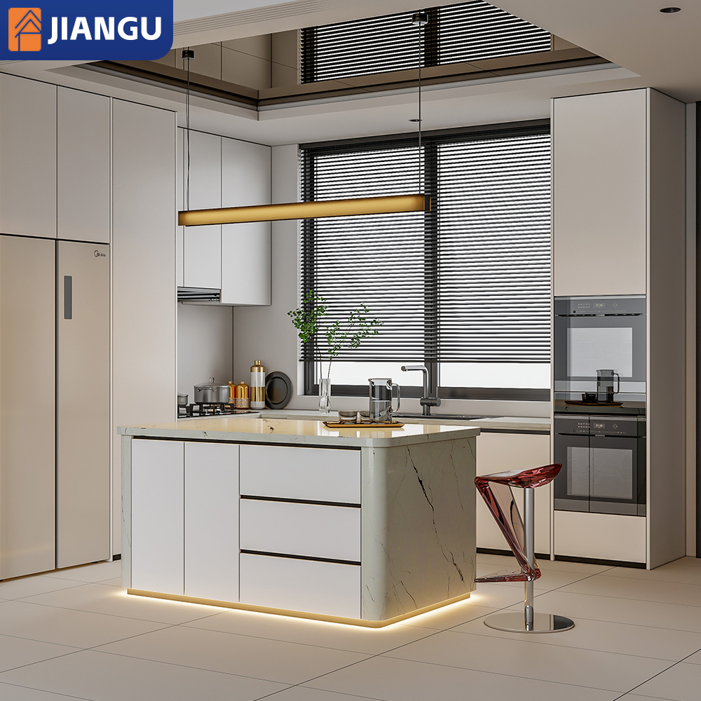 Australian Household Kitchen Products Smart High-end Modern Cabinet with Island LED Lamp Complete Storage Kitchen Furniture