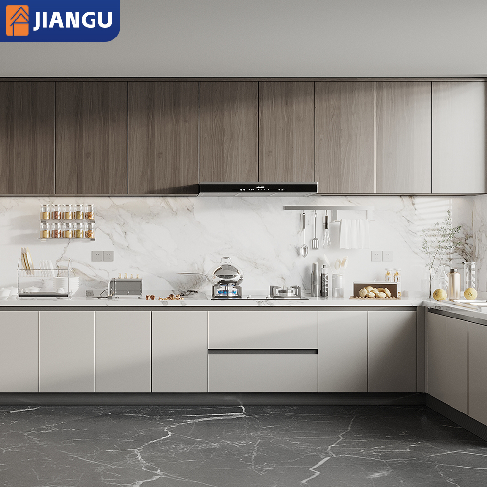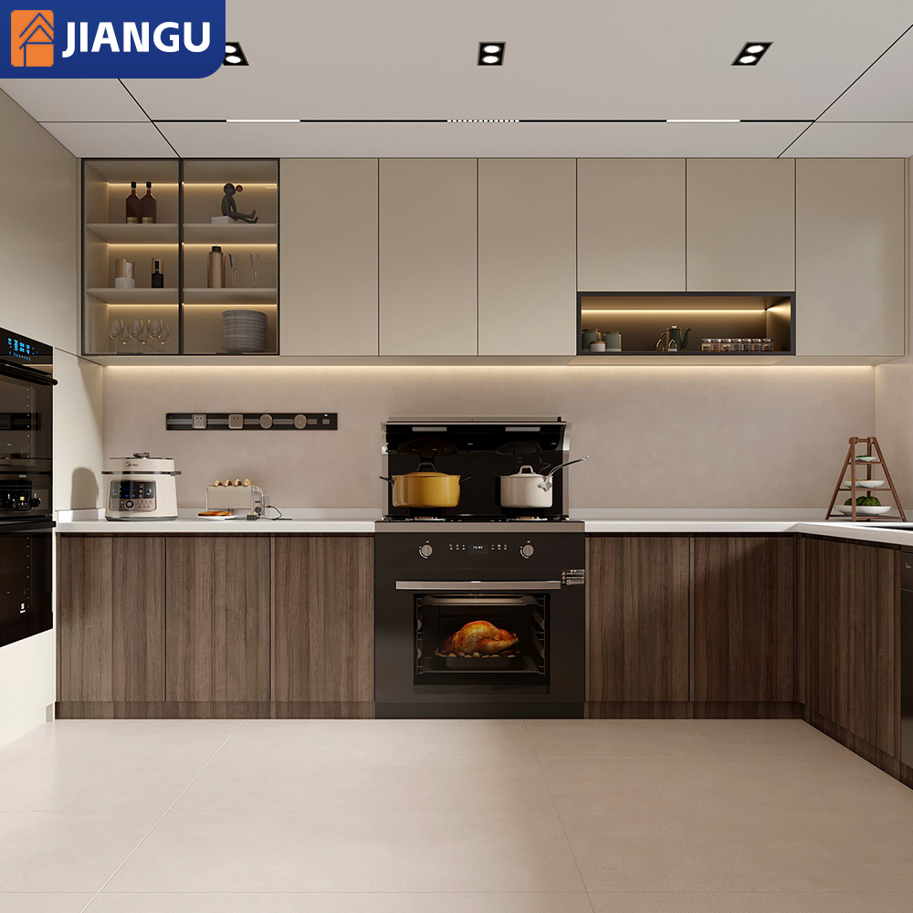 Modern Modular Kitchen Cabinet with Wood Veneer and Grain Finish Eco-Friendly High-end Storage for Dining and Mall Applications