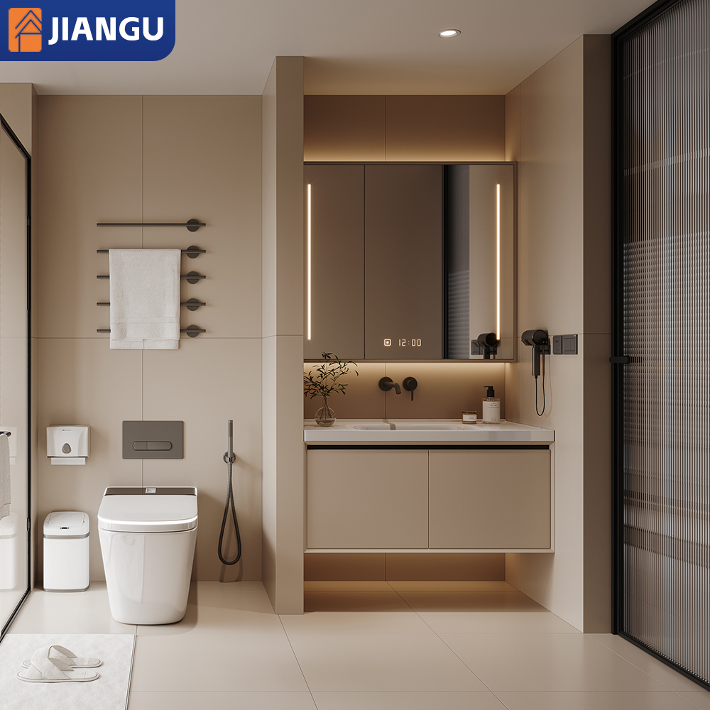 Hotel Villa Modern Style Standing Wall-Mounted Vanity Set Bathroom Cabinet, Customizable Size, Easy to Clean