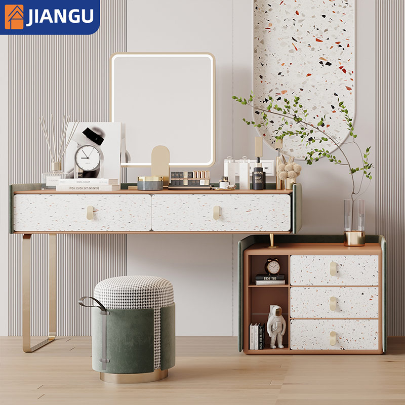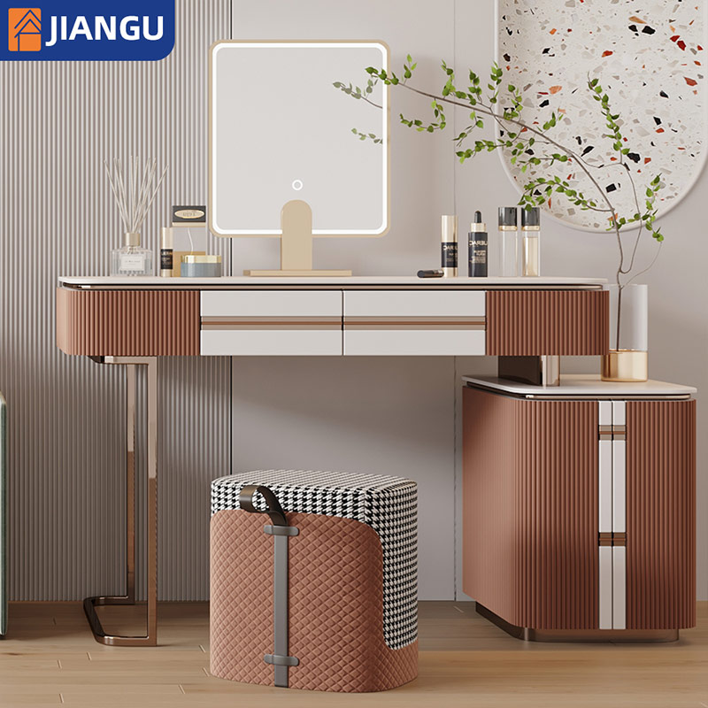 Minimalist Design Light Mirror Makeup Ample Cabinet Chest Drawers Apartment Sized Dressing Table with Chair