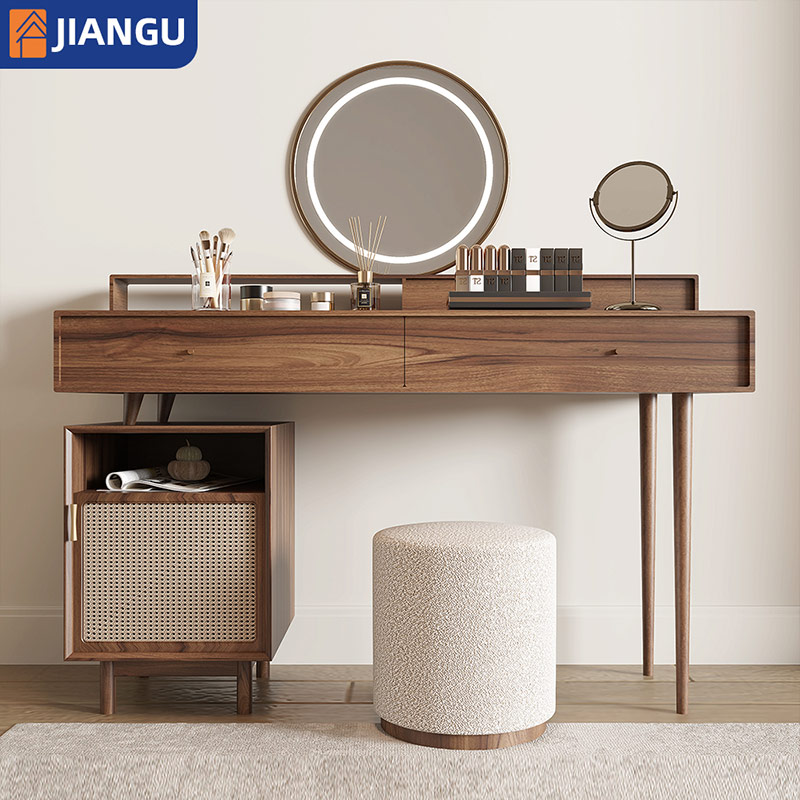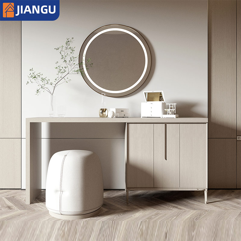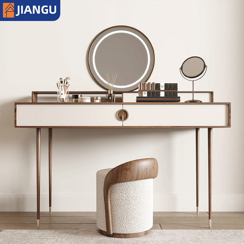 Italian Modern Minimalist Dressing Table Integrated Light Stainless Steel Solid Wood Luxury High-end Small Makeup Storage