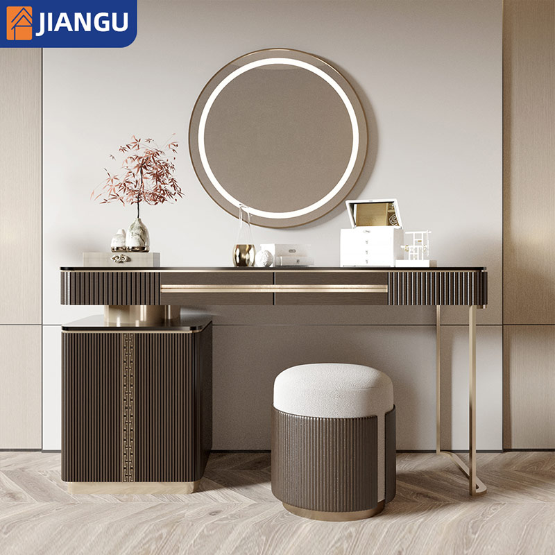 Modern Multifunctional Small Dressing Table with Lighted Mirror Popular Wholesale Makeup Table for Girl Cream Style Cheap Vanity