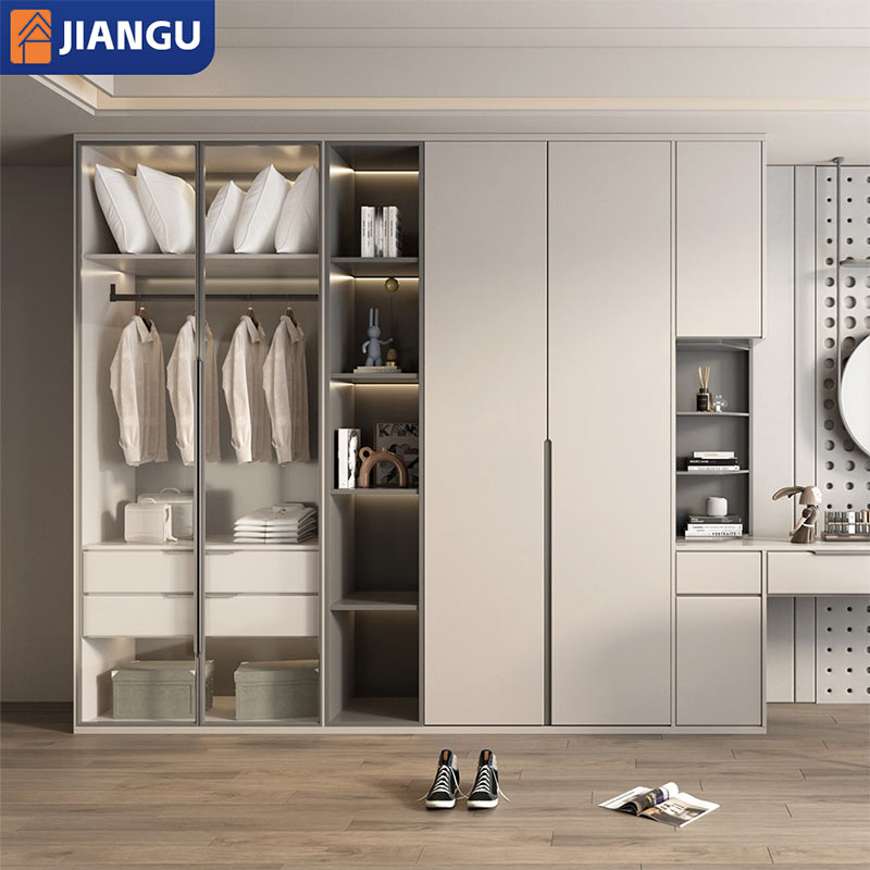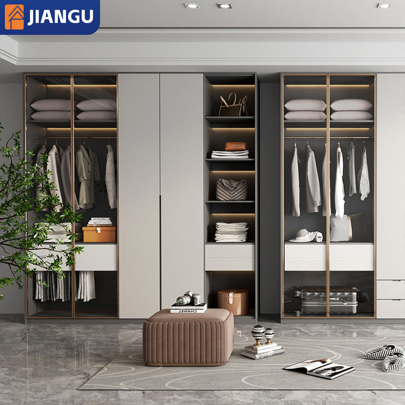 Wholesale Simple Design Custom Made Modular Wardrobe with Open Storage and Hanging Rods for Luxury Home Organization
