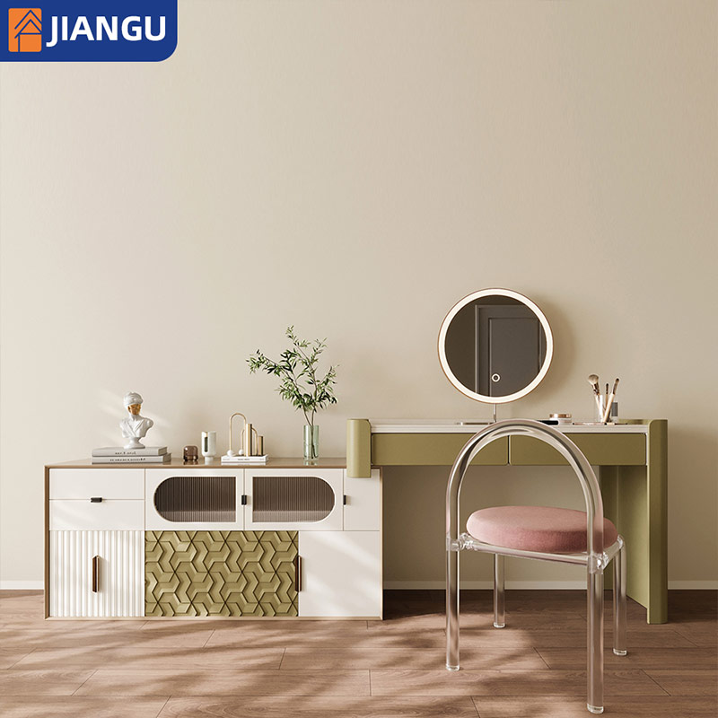 Minimalist Design Light Mirror Makeup Ample Cabinet Chest Drawers Apartment Sized Dressing Table with Chair