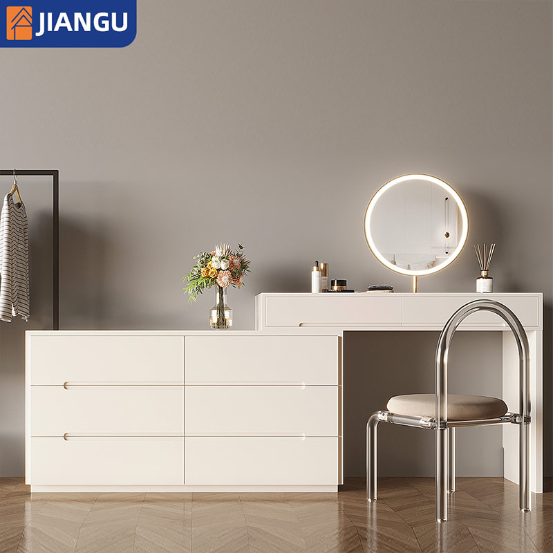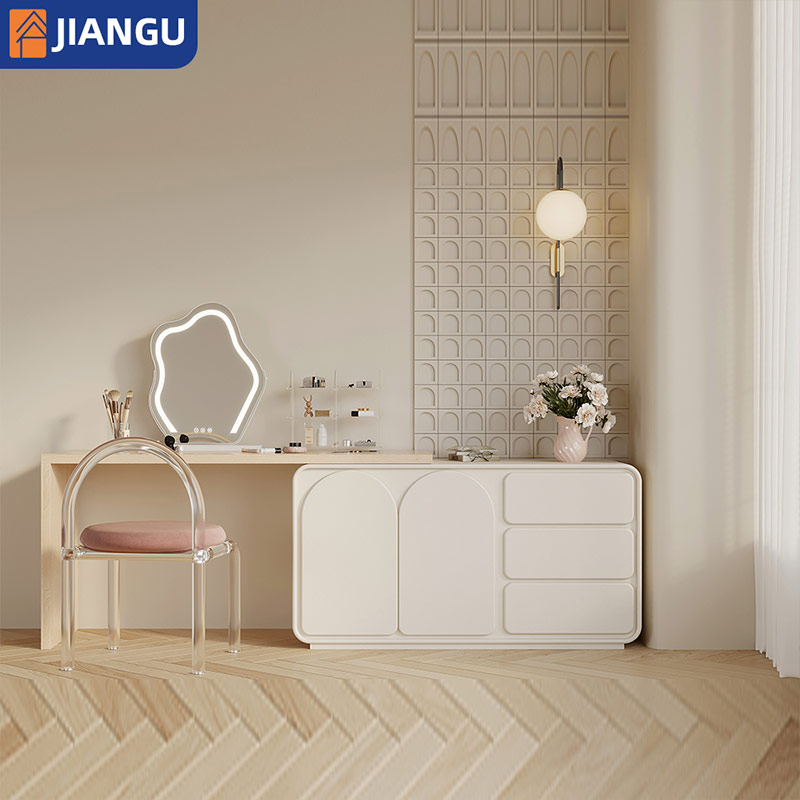 Modern Multifunctional Small Dressing Table with Lighted Mirror Popular Wholesale Makeup Table for Girl Cream Style Cheap Vanity