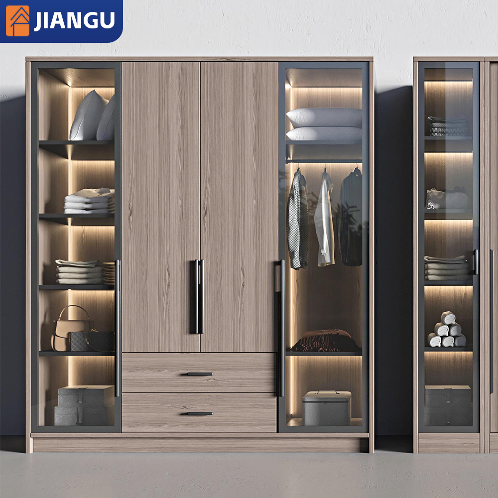 Customized Size Wood Cloth Cabinet Walkin Closet Melamine Finished Closet Design Wardrobes with Glass Door